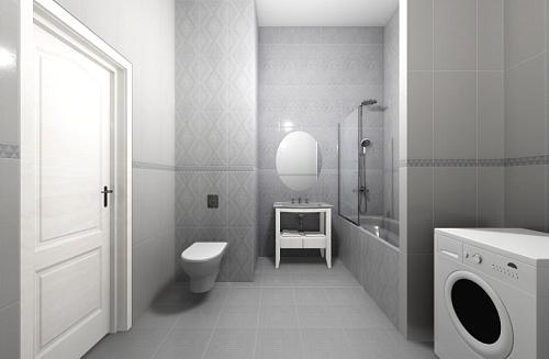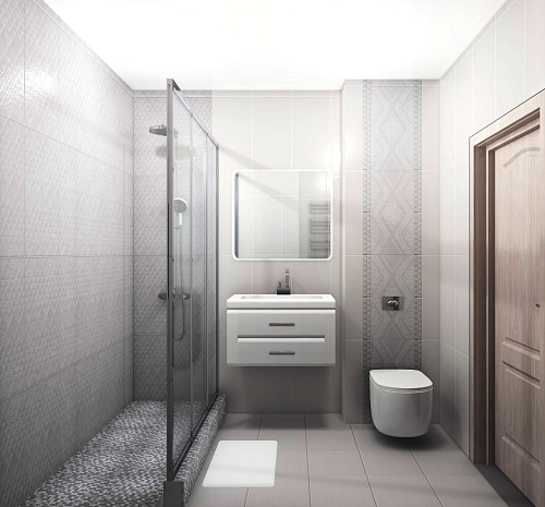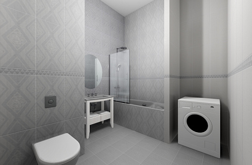 Настенная керамическая плитка для ванной комнаты. Матовая поверхность, формат плитки 31,5х63 см. Текстура под ткань (текстиль).