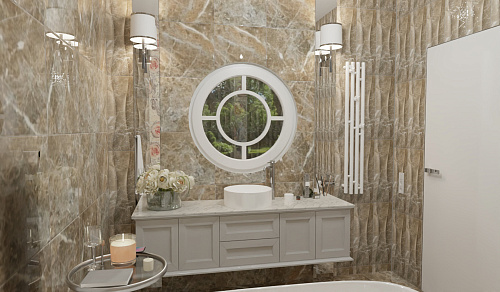 Керамическая плитка под мрамор, размер 20*60. В стиле Неоклассика. Поверхность глянцевая. Подходит для ванной комнаты, кухни, жилых помещений.