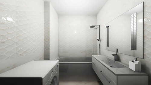 Керамическая плитка под мрамор, размер 25*75. В стиле Неоклассика. Поверхность глянцевая. Подходит для ванной комнаты, кухни, жилых помещений.