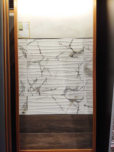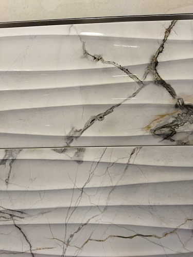 Керамическая плитка под мрамор, размер 25*75. Поверхность матовая. Подходит для ванной комнаты, кухни, коридора, прихожей. Подходит для стилей: Современный, Неоклассика, Классический.