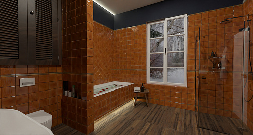 Керамическая плитка под камень, размер 1*15. В стиле Средиземноморский. Поверхность глянцевая. Подходит для ванной комнаты, кухни, жилых помещений.