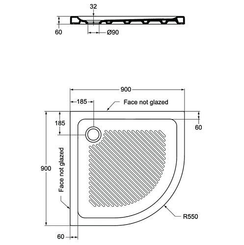 CONNECT Керамический угловой (сегментный) душевой поддон 90X90 см, R=550 mm.