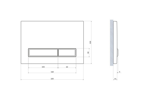 Кнопка изготовлена ??из пластика с матовым покрытием для двухуровневого механизма смыва