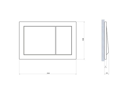 Кнопка изготовлена ??из пластика с матовым хромированным покрытием для двухуровневого механизма смыва
