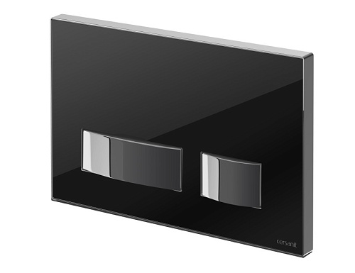 Черная кнопка из закаленного стекла с монтажной рамкой для двухуровнего механизма смыва