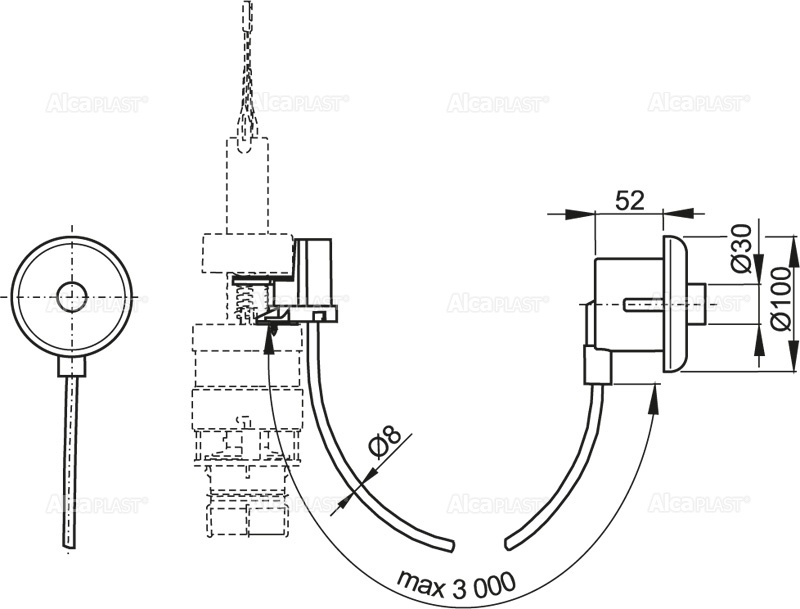 Кнопка смыва на расстоянии AlcaPlast MPO11 ручное управление, хром – глянцевая, монтаж: в стену