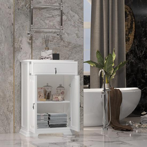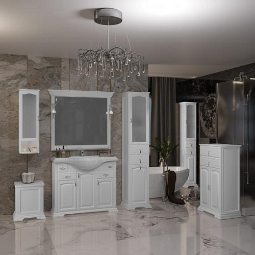 Коллекция РИСПЕКТО символизирует лучше традиции неоклассики в сочетании с необыкновенной функциональностью и простотой дизайна. Успех и уникальность коллекции формируется несколькими вариантами отделок, а также размерным рядом моделей и глубокой керамической раковиной. Завершенность стилю коллекции РИСПЕКТО придают сложные филенчатые фасады мебели. Несколько вариантов пеналов — узкий, стандартный (с бельевой корзиной) и двухстворчатый — удачно завершают комплектацию коллекции. Мебель оснащена механизмами плавного закрывания Hettich (Германия).