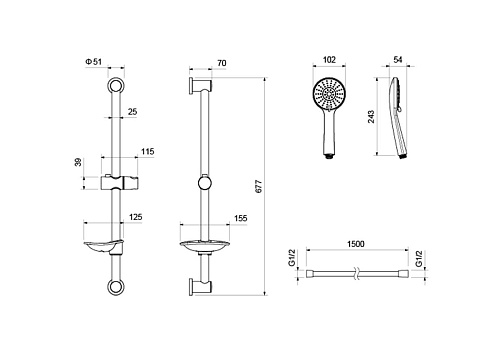 Оснащение 1. Смеситель для душа 2. Душевой гарнитур