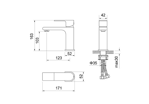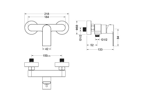 Оснащение 1. Смеситель для раковины 2. Смеситель для душа 3. Душевой гарнитур