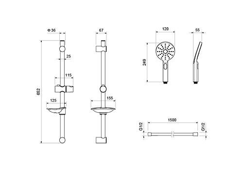 Оснащение 1. Смеситель для раковины 2. Смеситель для душа 3. Душевой гарнитур