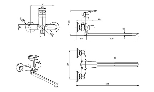 Оснащение 1. Смеситель для ванны 2. Душевой гарнитур