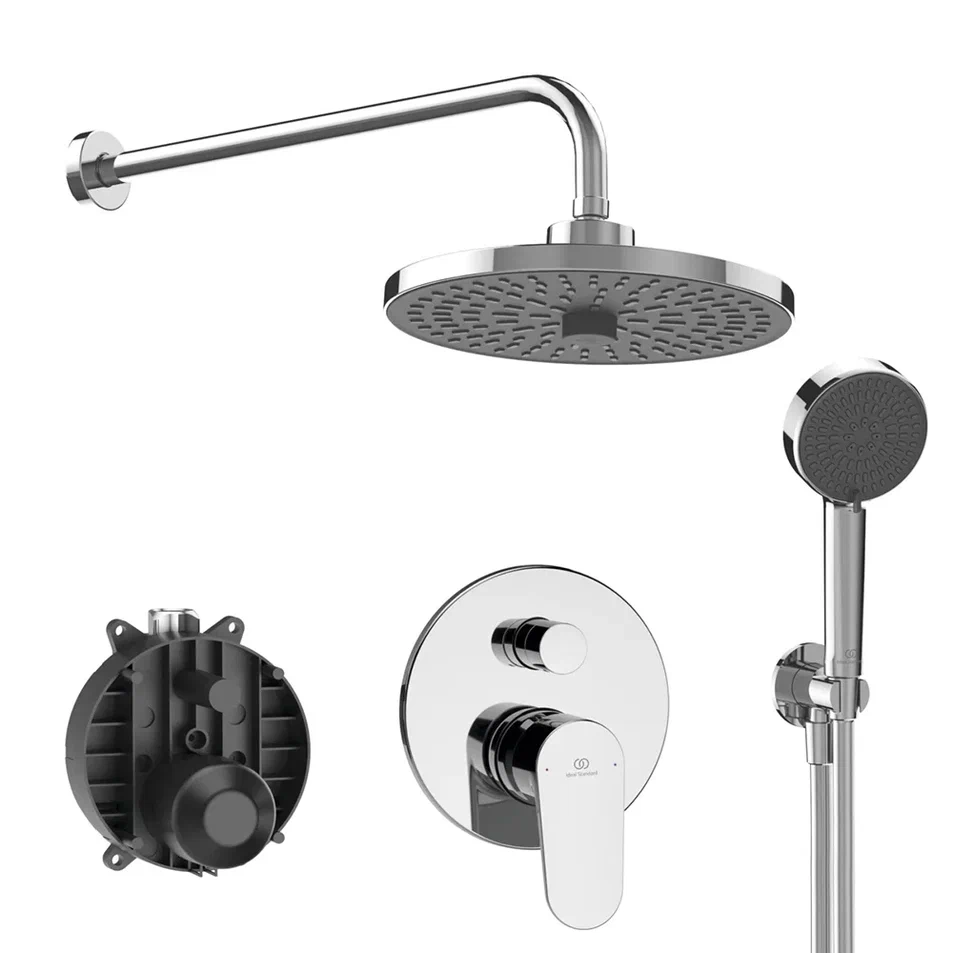 CERAFINE O Промо комплект, состоящий из: A7193AA CERAFINE O Встраиваемый смеситель для ванны/душа, комплект №1 (встраиваемая часть) + комплект №2 (внешняя часть); BC807AA IDEALRAIN Держатель с подключением душевой лейки 1/2"; BE175AA IDEALFLEX Шланг для душа 1750 мм; B9445AA IDEALRAIN Настенный держатель верхнего душа 400 мм; BD581AA ALU+ Круглый верхний душ ?260 мм, 2-функциональный, ограничение потока 12 л/мин; BD580AA ALU+ 2-функциональная душевая лейка, ?100мм, ограничение потока 8 л/мин.