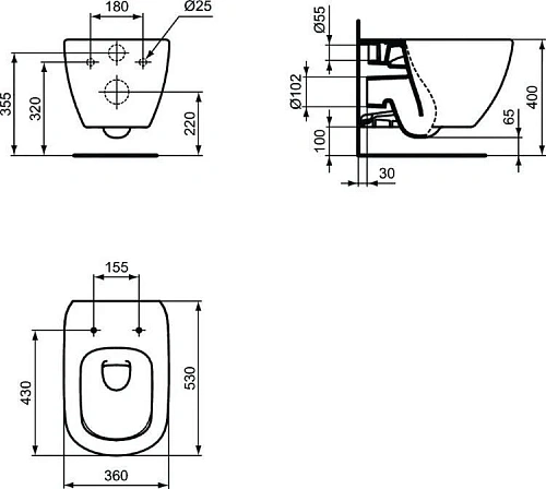 Оснащение Инсталляция R020467, унитаз T0079V3, крышка-сиденье T3527V3.