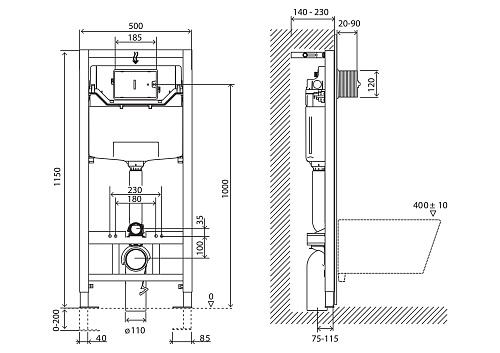 Тип товара Комплект: инсталляция+клавиша смыва