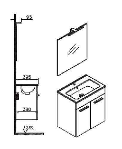 Оснащение Тумба, раковина, плоское зеркало, лампа подсветки, сифон, крепления, инструкция.