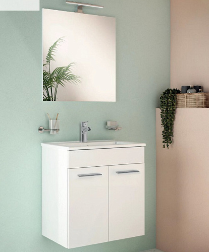 Комплект мебели Vitra 75023 Mia: тумба 60 см, раковина, зеркало c подсветкой, белый глянцевый купить по доступной цене