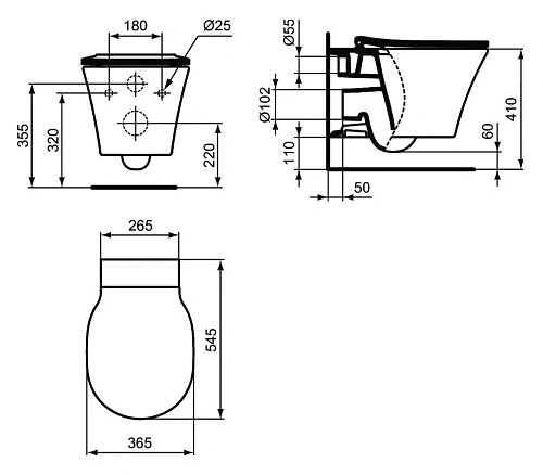 Промо-комплект, состоящий из: K819501 CONNECT AIR Подвесной унитаз, технология Rimless, полностью скрытый крепеж (TT0299598), с сидением и крышкой с функцией плавного закрытия E036801; R020467 PROSYS FRAME 120 M Встраиваемая инсталляция для монтажа для монтажа подвесных унитазов.