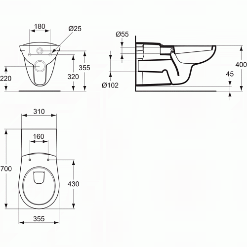 Комплект 4 в 1 Ideal Standard P243001RT21A6 Matura Prosys: подвесной унитаз для пожилых людей и инвалидов P243001 + крышка-сиденье + инсталляция для монтажа + клавиша смыва, Euro White (евробелый)