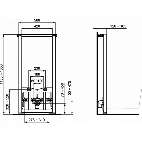 Комплект 2 в 1 Ideal Standard D211601 Prosys Connect: подвесное биде E772201 + инсталляция для монтажа R016267, Euro White (евробелый)