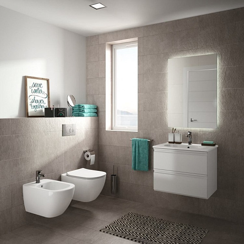 Биде промо-набор 2 в 1, состоящий из: T3552V1 TESI Подвесное биде, с отверстием под смеситель, с отверстием перелива, с крепежом TT0299598 (для полностью скрытого монтажа), R016267 PROSYS рама для монтажа подвесного биде.