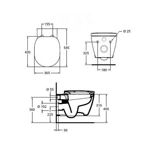 Комплект 3 в 1 Ideal Standard W880101 Connect: подвесной унитаз E803501 + крышка-сиденье E712701 + инсталляция для монтажа W3710AA, Euro White (евробелый)