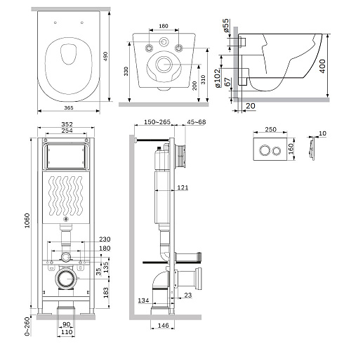 Комплект: Унитаз, Инсталляция, Кнопка смыва