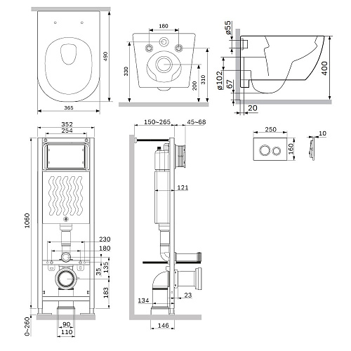Комплект: Унитаз, Инсталляция, Кнопка смыва