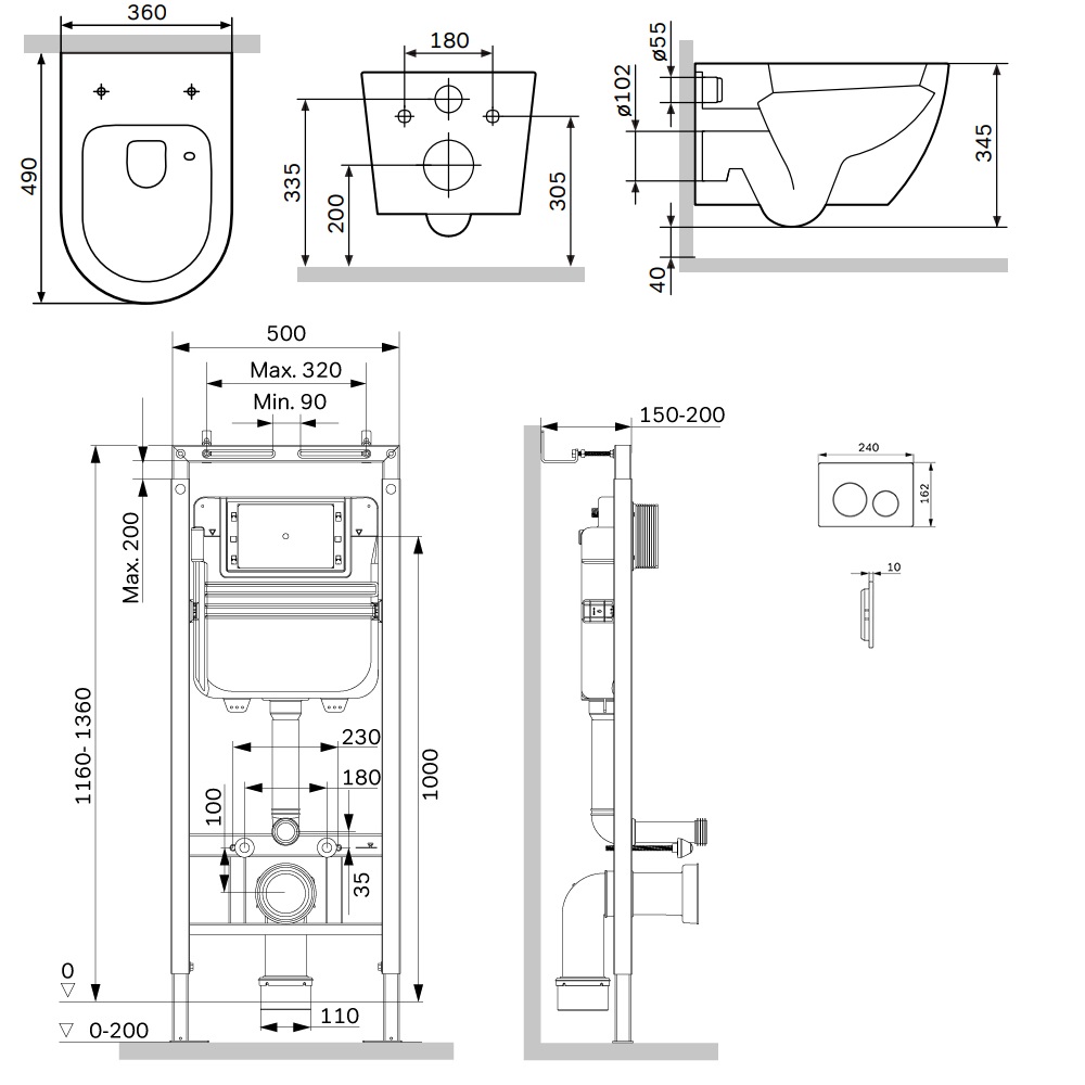 Тип товара Комплект: Унитаз, Инсталляция, Кнопка смыва