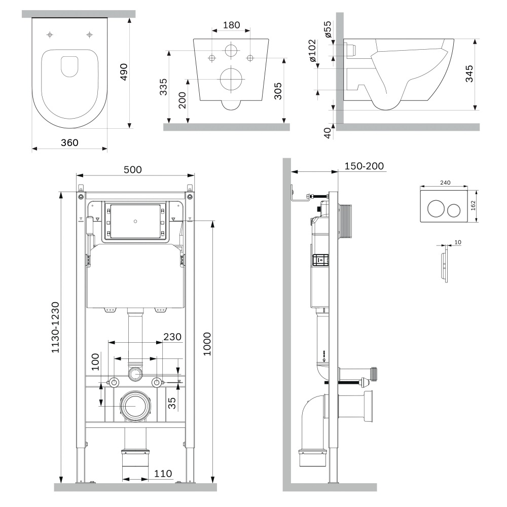 Комплект: Унитаз, Инсталляция, Кнопка смыва