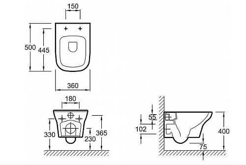 Тип товара Комплект: Унитаз, Инсталляция, Кнопка смыва