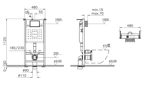 Комплект-унитаз, инсталляция,крышка-сиденье Vitra Mia Round плитка 9873B003-7205