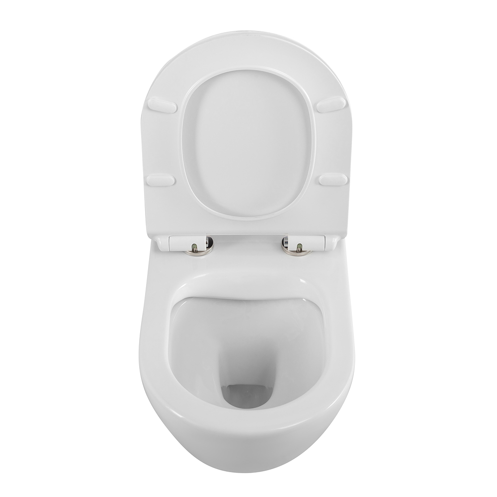 Подвесные унитазы выглядят миниатюрнее и легче, что идеально соответствует требованиям современного стиля. Малые габариты изделий позволяют существенно экономить пространство в санузлах небольших размеров. Скрытый монтаж компактной системы инсталляции улучшает эстетический вид и поможет реализовать любую дизайнерскую идею ванной комнаты. Подвесной монтаж унитаза даст возможность красиво и удобно разместить ершик и гигиенический душ. Отсутствие ножки унитаза позволяет выложить цельный узор из плитки на полу, что значительно меняет восприятие интерьера. Создает дополнительные возможности укладки кабельной системы обогрева пола. Подвесные унитазы с инсталляционной системой выдерживают нагрузку до 400 кг, что гарантирует надежность всей конструкции. Безободковая конструкция чаши и идеально гладкая поверхность придают унитазу эстетичный вид и облегчают уход. •Продукция произведена по международным стандартам EN •Безободковая конструкция с мощным эффективным смывом •Пониженный уровень шума при смыве •Конструкция чаши и направление потока смыва полностью исключают выплескивание воды •Стекловидная глазурь •Сиденье в комплекте с унитазом •Быстросъёмная крышка-сиденье обеспечивает легкий и удобный уход, оснащена механизмом плавного опускания •Скрытая крепежная система •Легкость сборки и монтажа •Гигиеничность и удобный уход •Гарантия: 25 лет на керамику, на крышку-сиденье 1 год