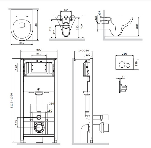 Комплект: Унитаз, сиденье, инсталляция, кнопка
