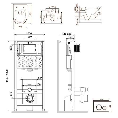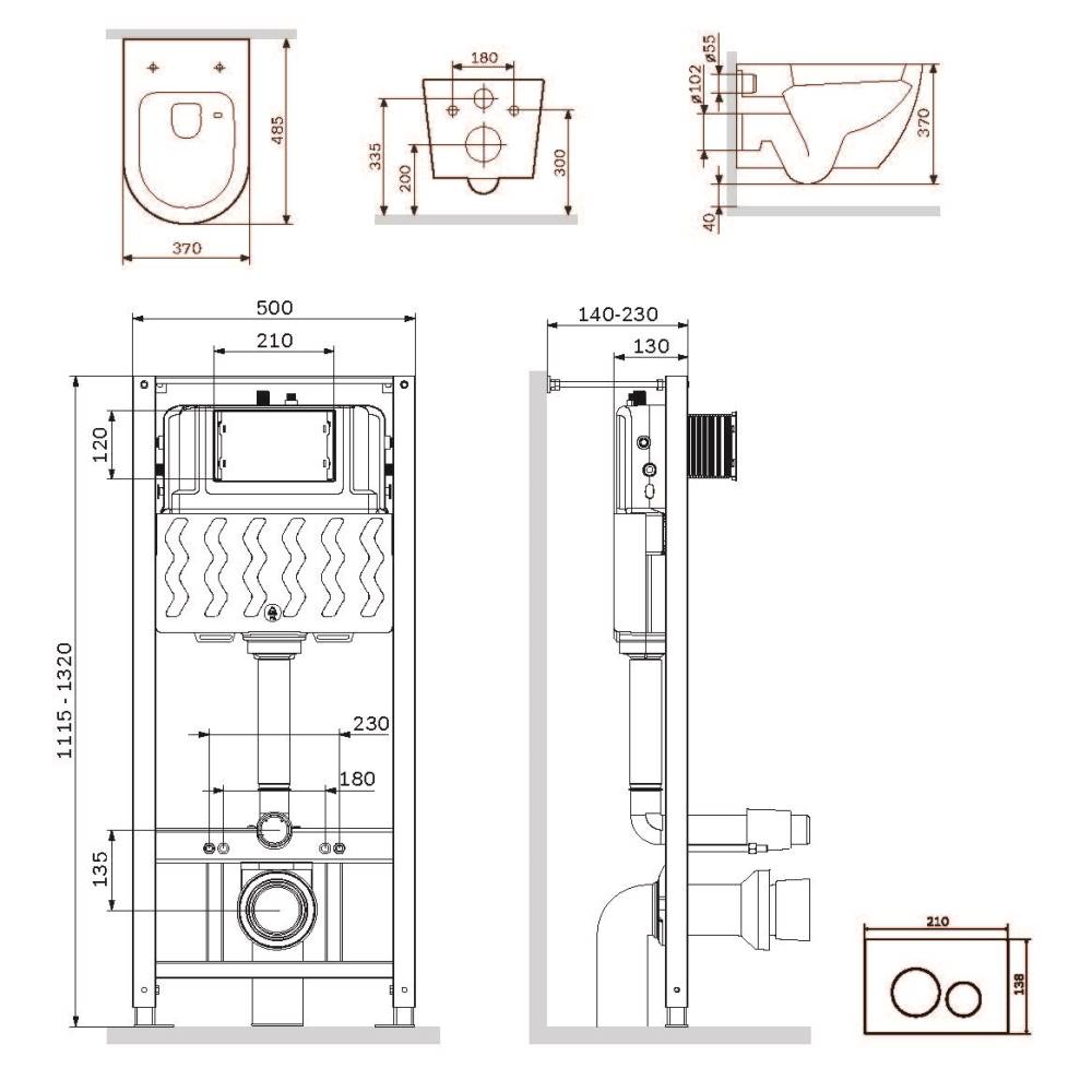 Комплект: Унитаз, сиденье, инсталляция, кнопка