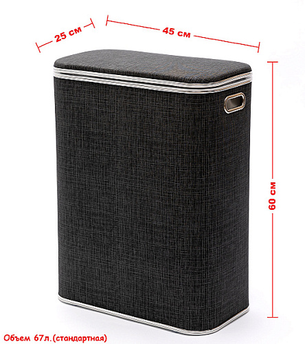 Можно использовать как пуфик или стульчик. Выдерживает вес до 100 кг. Плавное закрывание крышки. Внутри корзин съемный мешок, который легко стирается. Дополнительная вентиляции за счет отверстий ручек и вентиляционной решетки на днище корзины. Материал Экокожа долговечен, не имеет запаха, легок в уходе Собственное производство, со строжайшим контролем качества! Гарантия производителя 2 года.