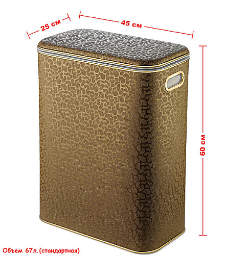 Можно использовать как пуфик или стульчик. Выдерживает вес до 100 кг. Плавное закрывание крышки. Внутри корзин съемный мешок, который легко стирается. Дополнительная вентиляции за счет отверстий ручек и вентиляционной решетки на днище корзины. Материал Экокожа долговечен, не имеет запаха, легок в уходе Собственное производство, со строжайшим контролем качества! Гарантия производителя 2 года.