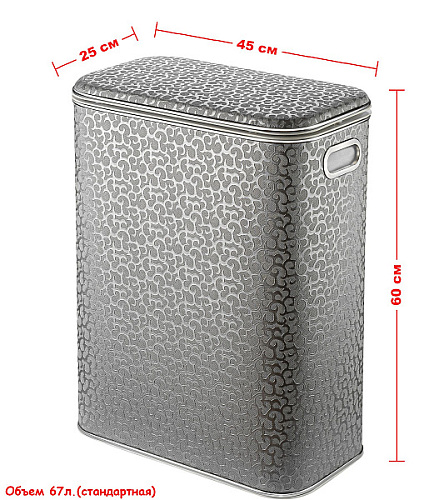 Можно использовать как пуфик или стульчик. Выдерживает вес до 100 кг. Плавное закрывание крышки. Внутри корзин съемный мешок, который легко стирается. Дополнительная вентиляции за счет отверстий ручек и вентиляционной решетки на днище корзины. Материал Экокожа долговечен, не имеет запаха, легок в уходе Собственное производство, со строжайшим контролем качества! Гарантия производителя 2 года.