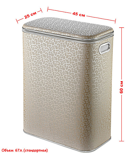 Можно использовать как пуфик или стульчик. Выдерживает вес до 100 кг. Плавное закрывание крышки. Внутри корзин съемный мешок, который легко стирается. Дополнительная вентиляции за счет отверстий ручек и вентиляционной решетки на днище корзины. Материал Экокожа долговечен, не имеет запаха, легок в уходе Собственное производство, со строжайшим контролем качества! Гарантия производителя 2 года.