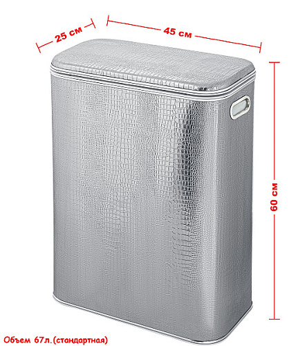 Можно использовать как пуфик или стульчик. Выдерживает вес до 100 кг. Плавное закрывание крышки. Внутри корзин съемный мешок, который легко стирается. Дополнительная вентиляции за счет отверстий ручек и вентиляционной решетки на днище корзины. Материал Экокожа долговечен, не имеет запаха, легок в уходе Собственное производство, со строжайшим контролем качества! Гарантия производителя 2 года.