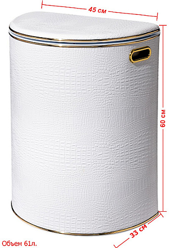 Можно использовать как пуфик или стульчик. Выдерживает вес до 100 кг. Плавное закрывание крышки. Внутри корзин съемный мешок, который легко стирается. Дополнительная вентиляции за счет отверстий ручек и вентиляционной решетки на днище корзины. Материал Экокожа долговечен, не имеет запаха, легок в уходе Собственное производство, со строжайшим контролем качества! Гарантия производителя 2 года.