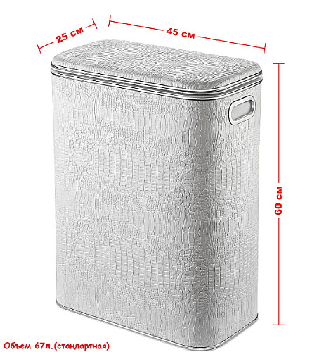 Можно использовать как пуфик или стульчик. Выдерживает вес до 100 кг. Плавное закрывание крышки. Внутри корзин съемный мешок, который легко стирается. Дополнительная вентиляции за счет отверстий ручек и вентиляционной решетки на днище корзины. Материал Экокожа долговечен, не имеет запаха, легок в уходе Собственное производство, со строжайшим контролем качества! Гарантия производителя 2 года.