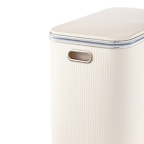 Можно использовать как пуфик или стульчик. Выдерживает вес до 100 кг. Плавное закрывание крышки. Внутри корзин съемный мешок,который легко стирается. Дополнительная вентиляции за счет отверстий ручек и вентиляционной решетки на днище корзины. Материал Экокожа долговечен, не имеет запаха, легок в уходе