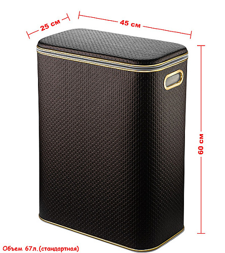 Можно использовать как пуфик или стульчик. Выдерживает вес до 100 кг. Плавное закрывание крышки. Внутри корзин съемный мешок, который легко стирается. Дополнительная вентиляции за счет отверстий ручек и вентиляционной решетки на днище корзины. Материал Экокожа долговечен, не имеет запаха, легок в уходе Собственное производство, со строжайшим контролем качества! Гарантия производителя 2 года.
