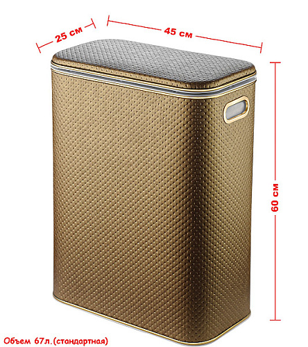 Можно использовать как пуфик или стульчик. Выдерживает вес до 100 кг. Плавное закрывание крышки. Внутри корзин съемный мешок, который легко стирается. Дополнительная вентиляции за счет отверстий ручек и вентиляционной решетки на днище корзины. Материал Экокожа долговечен, не имеет запаха, легок в уходе Собственное производство, со строжайшим контролем качества! Гарантия производителя 2 года.
