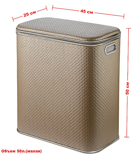 Можно использовать как пуфик или стульчик. Выдерживает вес до 100 кг. Плавное закрывание крышки. Внутри корзин съемный мешок,который легко стирается. Дополнительная вентиляции за счет отверстий ручек и вентиляционной решетки на днище корзины. Материал Экокожа долговечен, не имеет запаха, легок в уходе Собственное производство, строжайший контроль качества. Гарантия производителя 2 года.