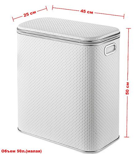 Можно использовать как пуфик или стульчик. Выдерживает вес до 100 кг. Плавное закрывание крышки. Внутри корзин съемный мешок,который легко стирается. Дополнительная вентиляции за счет отверстий ручек и вентиляционной решетки на днище корзины. Материал Экокожа долговечен, не имеет запаха, легок в уходе Собственное производство, строжайший контроль качества. Гарантия производителя 2 года.