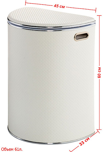 Можно использовать как пуфик или стульчик. Выдерживает вес до 100 кг. Плавное закрывание крышки. Внутри корзин съемный мешок, который легко стирается. Дополнительная вентиляции за счет отверстий ручек и вентиляционной решетки на днище корзины. Материал Экокожа долговечен, не имеет запаха, легок в уходе Собственное производство, со строжайшим контролем качества! Гарантия производителя 2 года.