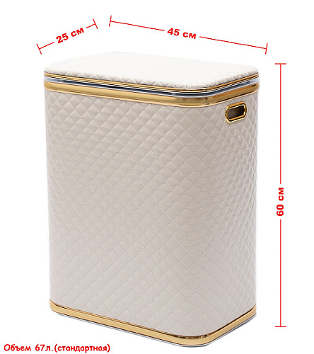 Можно использовать как пуфик или стульчик. Выдерживает вес до 100 кг. Плавное закрывание крышки. Внутри корзин съемный мешок, который легко стирается. Дополнительная вентиляции за счет отверстий ручек и вентиляционной решетки на днище корзины. Материал Экокожа долговечен, не имеет запаха, легок в уходе Собственное производство, со строжайшим контролем качества! Гарантия производителя 2 года.