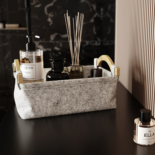 Назначение: Корзина. Материал:войлок, деревянные ручки. Описание: Размер: 33 х 22,5 х 11,5 см*