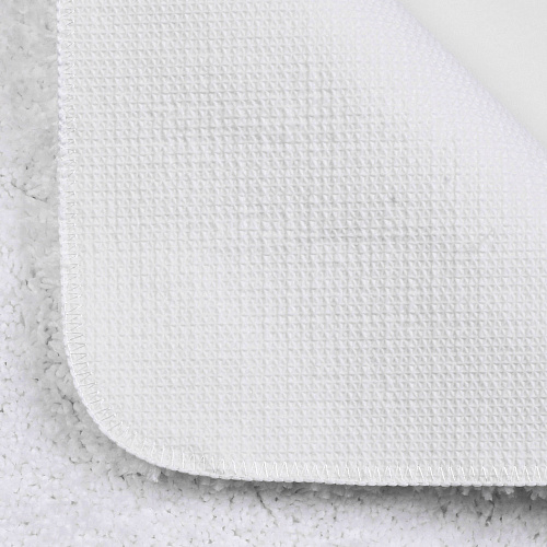 Назначение: Коврик для ванной комнаты. Материал: Антискользящее основание (термопластичная резина), микрофибра. Покрытие: Микрофибра. Описание: размер 550 х 570 мм, высота ворса 30 mm. Коврики подлежат машинной стирке при температуре не выше 30 градусов в режиме бережной стирки.